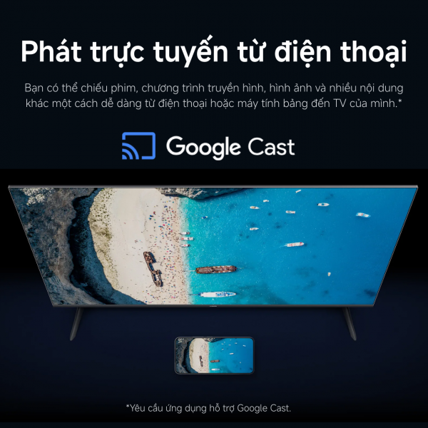 Hỗ trợ Chromecast built-in và AirPlay, giúp truyền phát video, hình ảnh, âm nhạc từ điện thoại lên màn hình lớn cực kỳ tiện lợi.