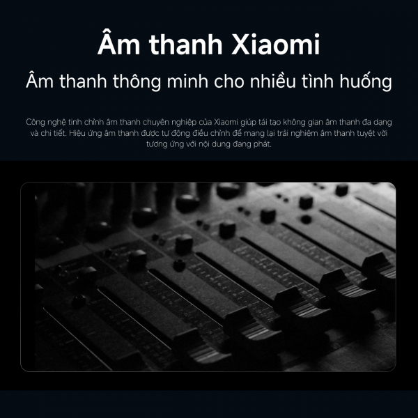 Công nghệ âm thanh thông minh Xiaomi tự động nhận biết nội dung đang phát để điều chỉnh âm lượng, độ trầm bổng và tần số phù hợp.